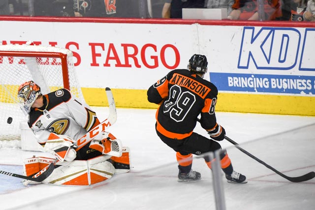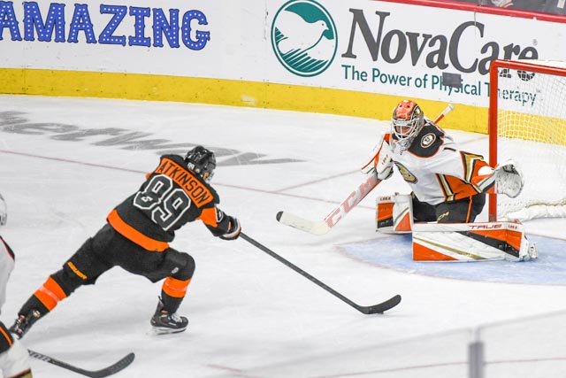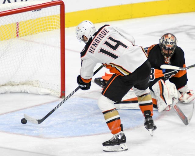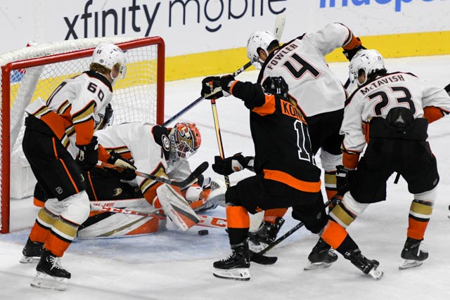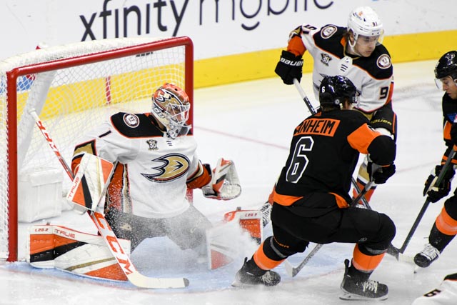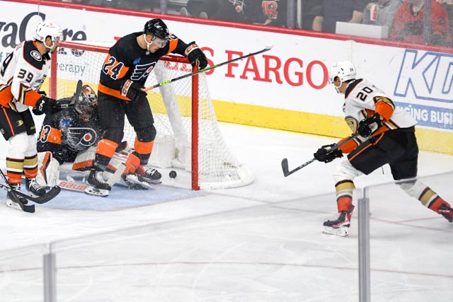 The Ducks built a 4-0 lead into the second period, and held off the Flyers for the win.