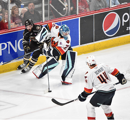 NOTES: Attendance was 10,687, the fourth consecutive capacity crowd of the Finals… Hershey was 1-for-6 on the power play in Game 4… The home team is 4-0 in the series… The Bears are now 4-1 in one-goal games this postseason; the Firebirds are 5-7… Coachella Valley dropped to 3-8 in games when they enter with a series lead.