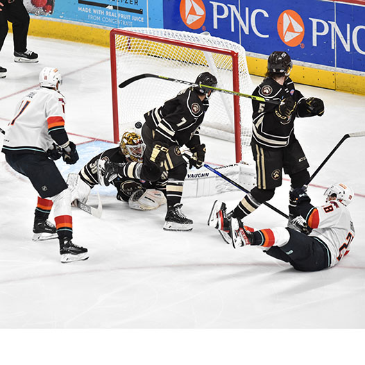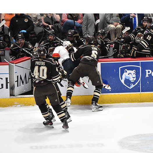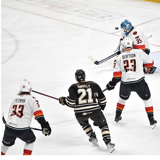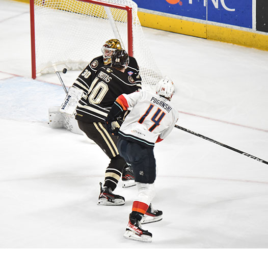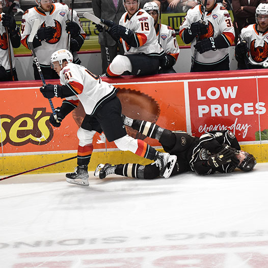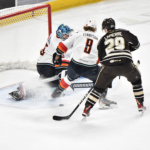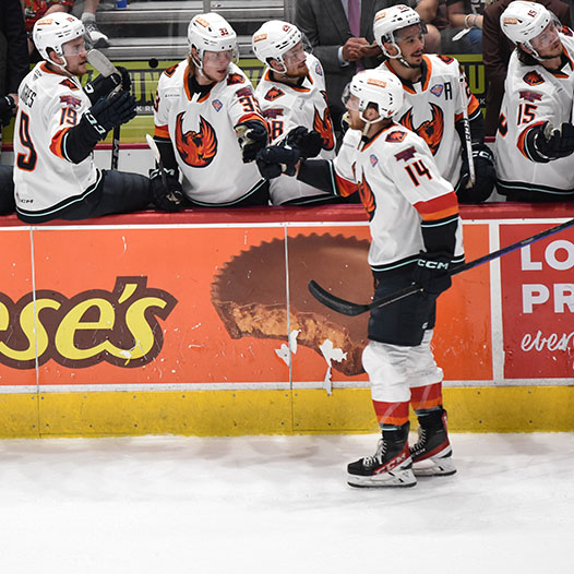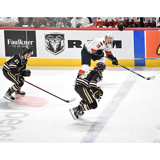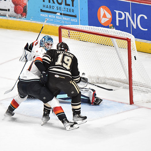 Vecchione had gone 10 games without a goal before he opened the scoring on a power play 4:27 into the contest. After the Firebirds tied it, Vecchione scored again early in the second period and then set up Frank’s eventual game-winner with 5:36 left in the middle frame.