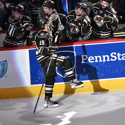 HERSHEY, Pa. (theahl.com) … The Calder Cup Finals are all even after the Hershey Bears held on for a 3-2 victory over Coachella Valley in Game 4 at a sold-out Giant Center on Thursday night.