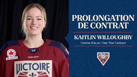 MONTRÉAL, QC – The Montréal Victoire announced on Tuesday that the club has re-signed forward Kaitlin Willoughby to a one-year contract extension through the 2025-26 Professional Women’s Hockey League (PWHL) season.