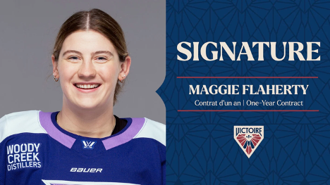 MONTRÉAL, QC – The Montréal Victoire announced on Friday that the club has signed defender Maggie Flaherty to a one-year Professional Women’s Hockey League (PWHL) Standard Player Agreement for the 2025-26 season.