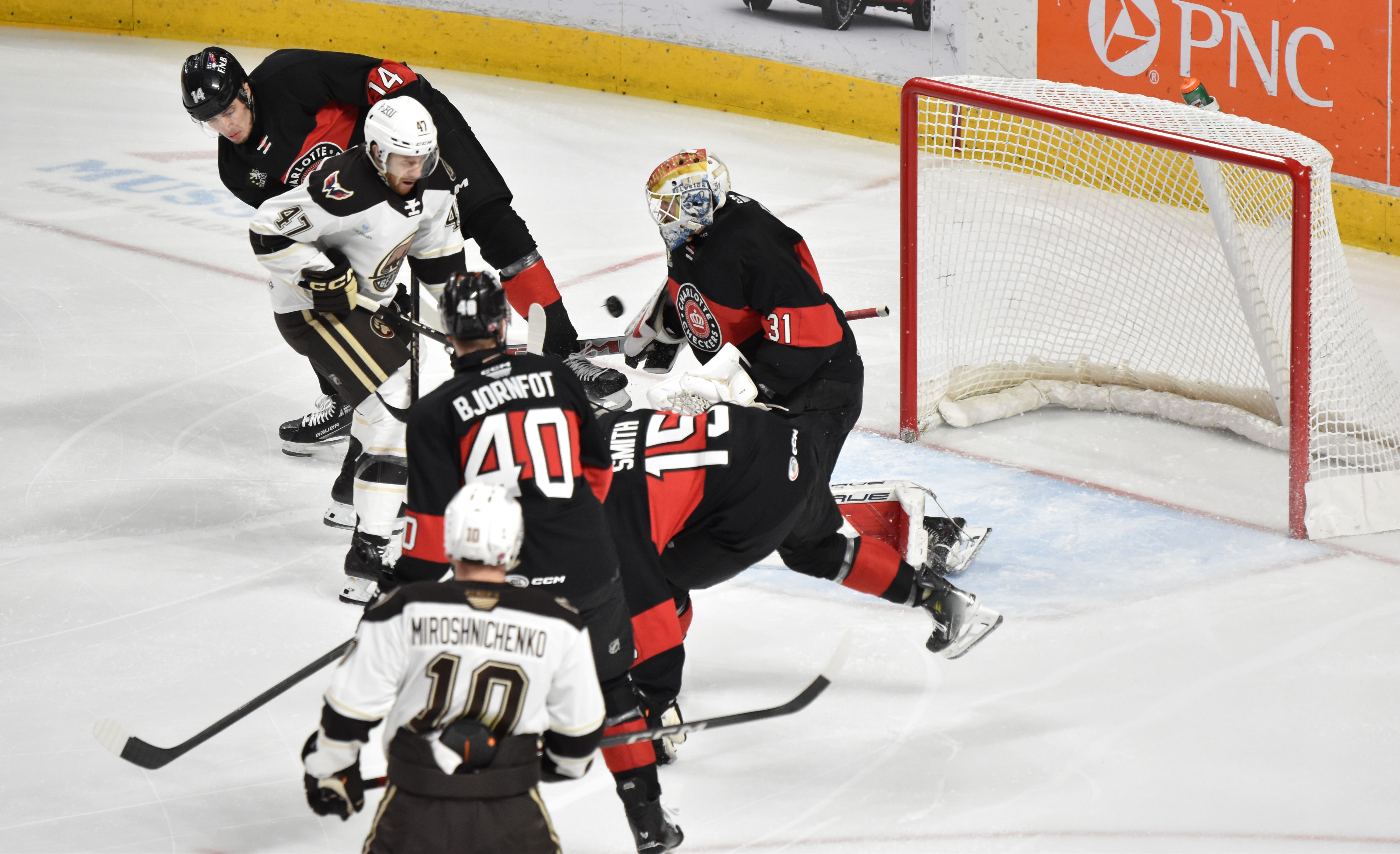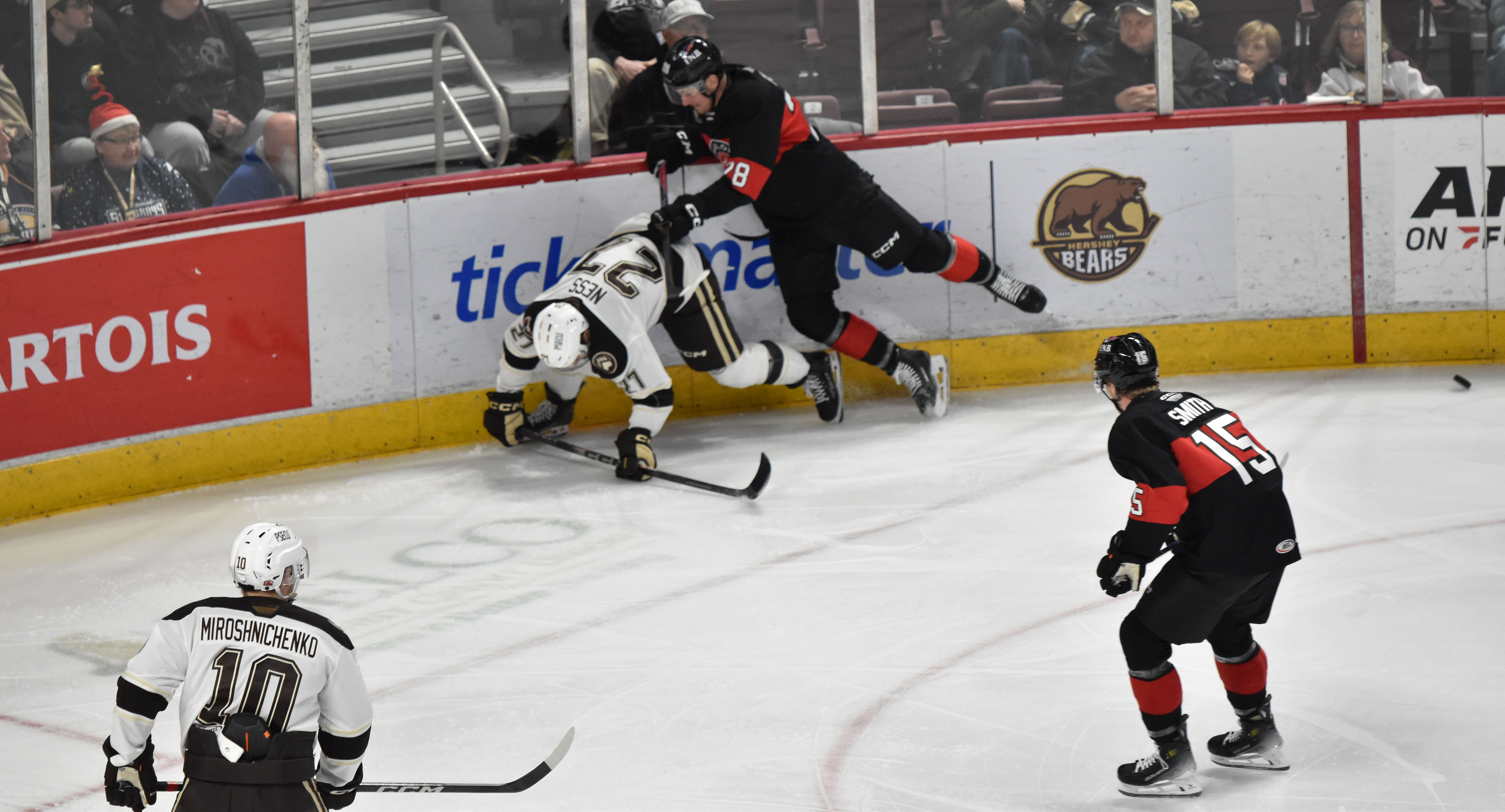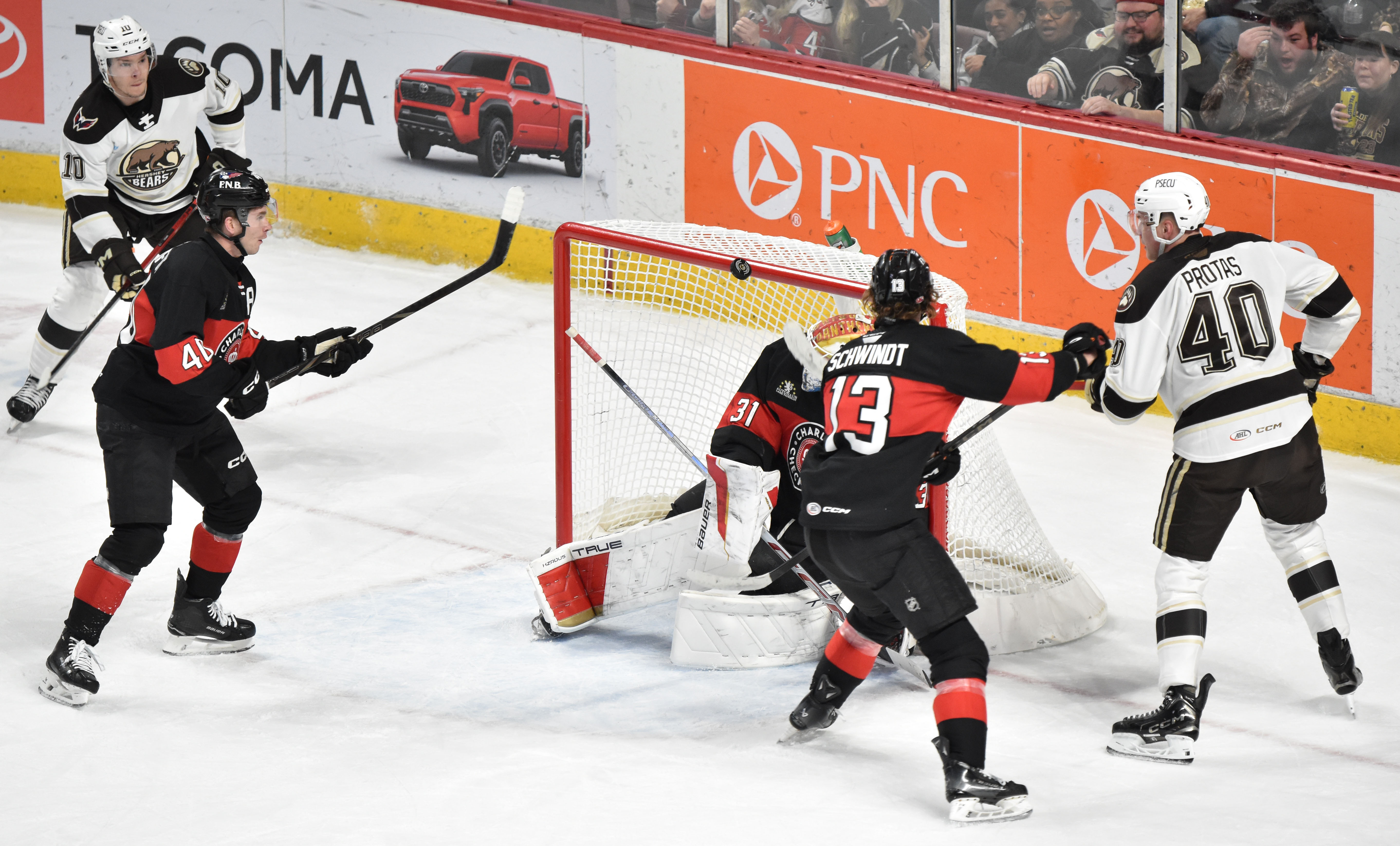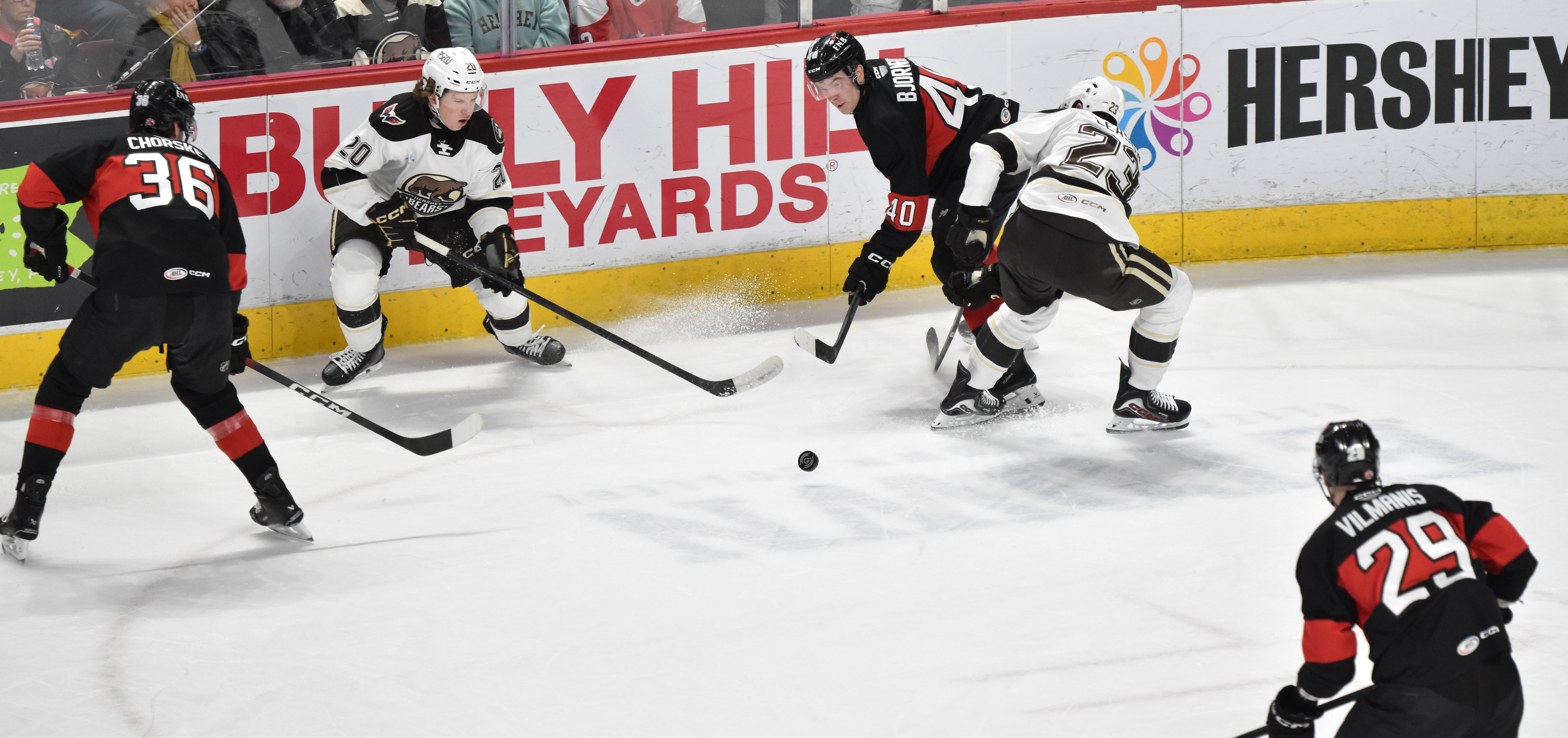 Sandis Vilmanis buried the game-winning goal with 1:18 left in regulation. Brett Chorske stole the puck behind the Hershey net, centered it for Smith, who moved it across the slot for Vilmanis. The Riga, Latvia, native made no mistake, firing his seventh goal of the season past a sprawling Gibson. Cooper Black recorded his 13th win of the season with 24 saves, improving to 10-1 in his last 11 outings. Gibson stopped 19 shots in the loss.