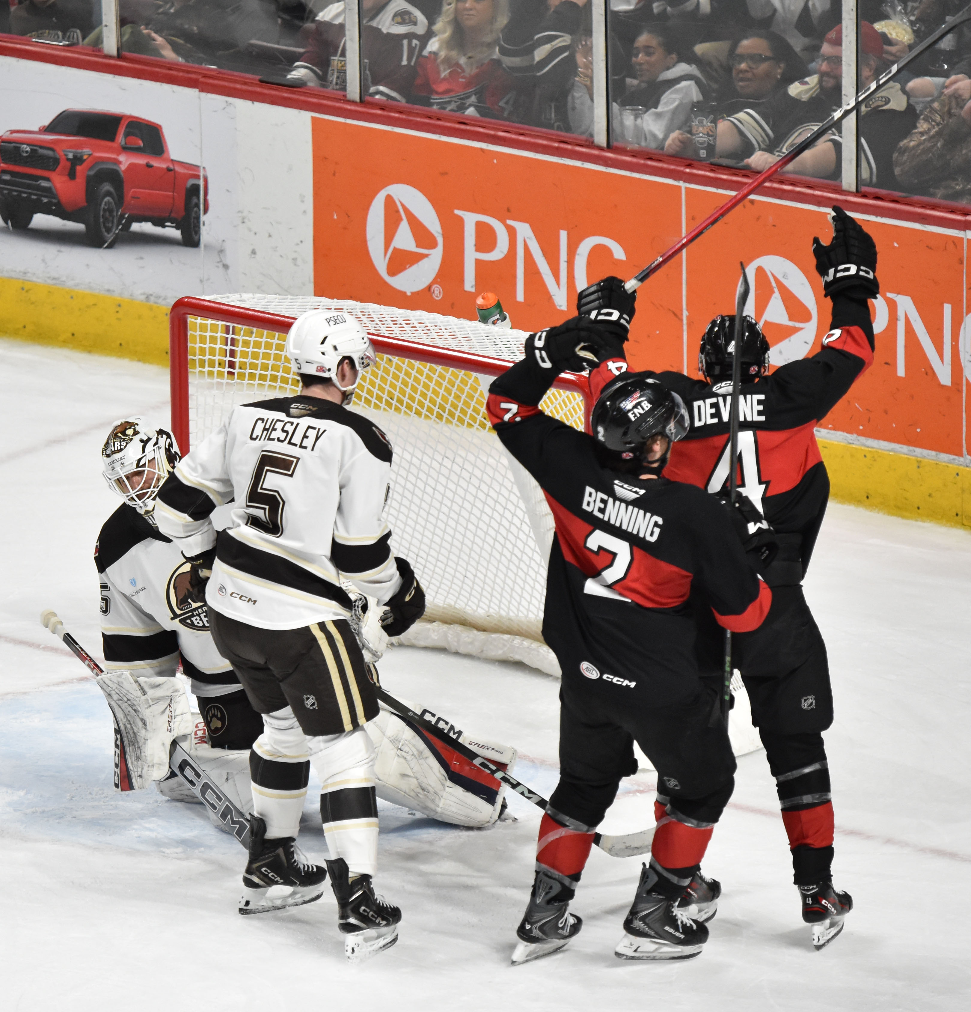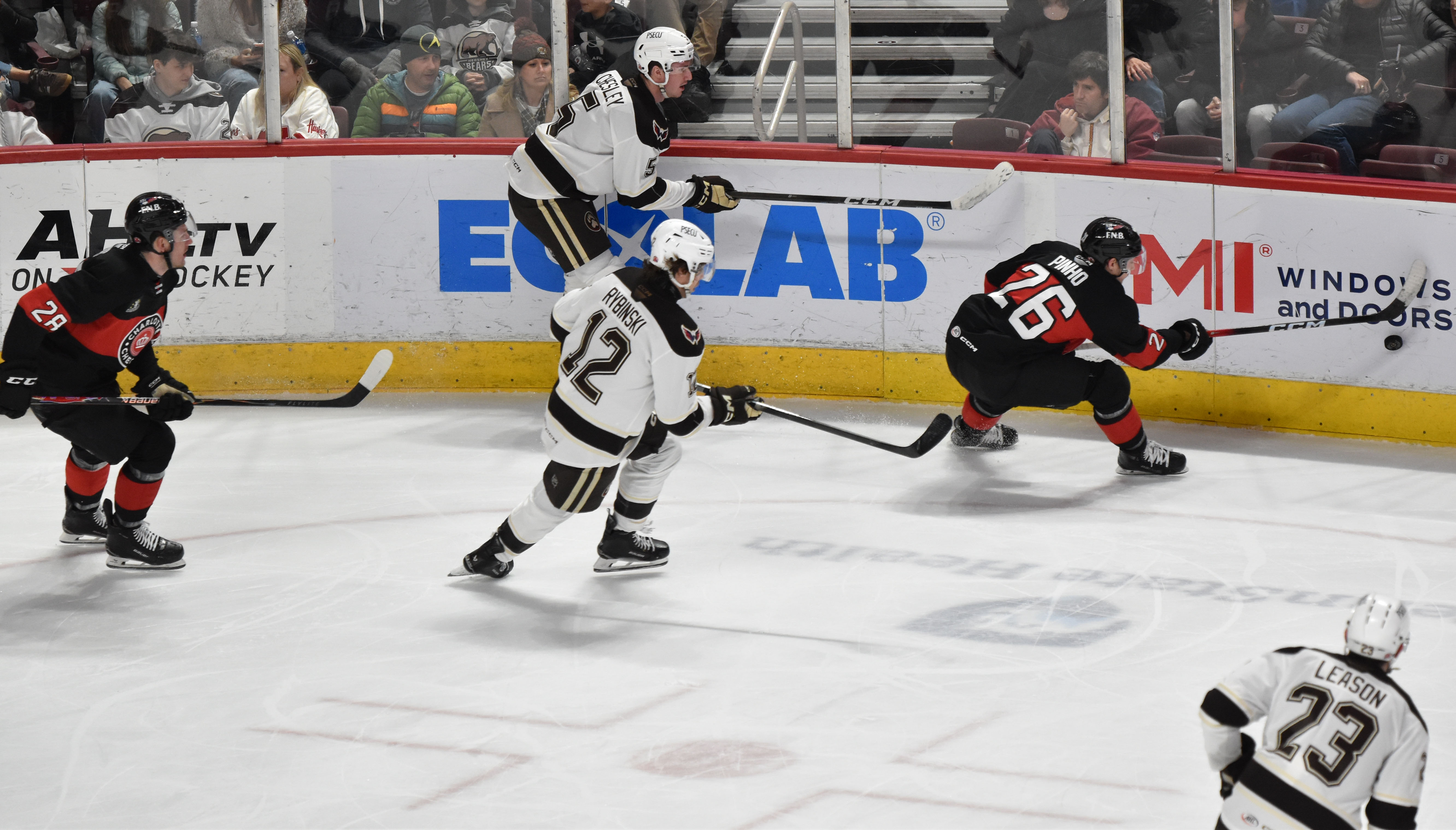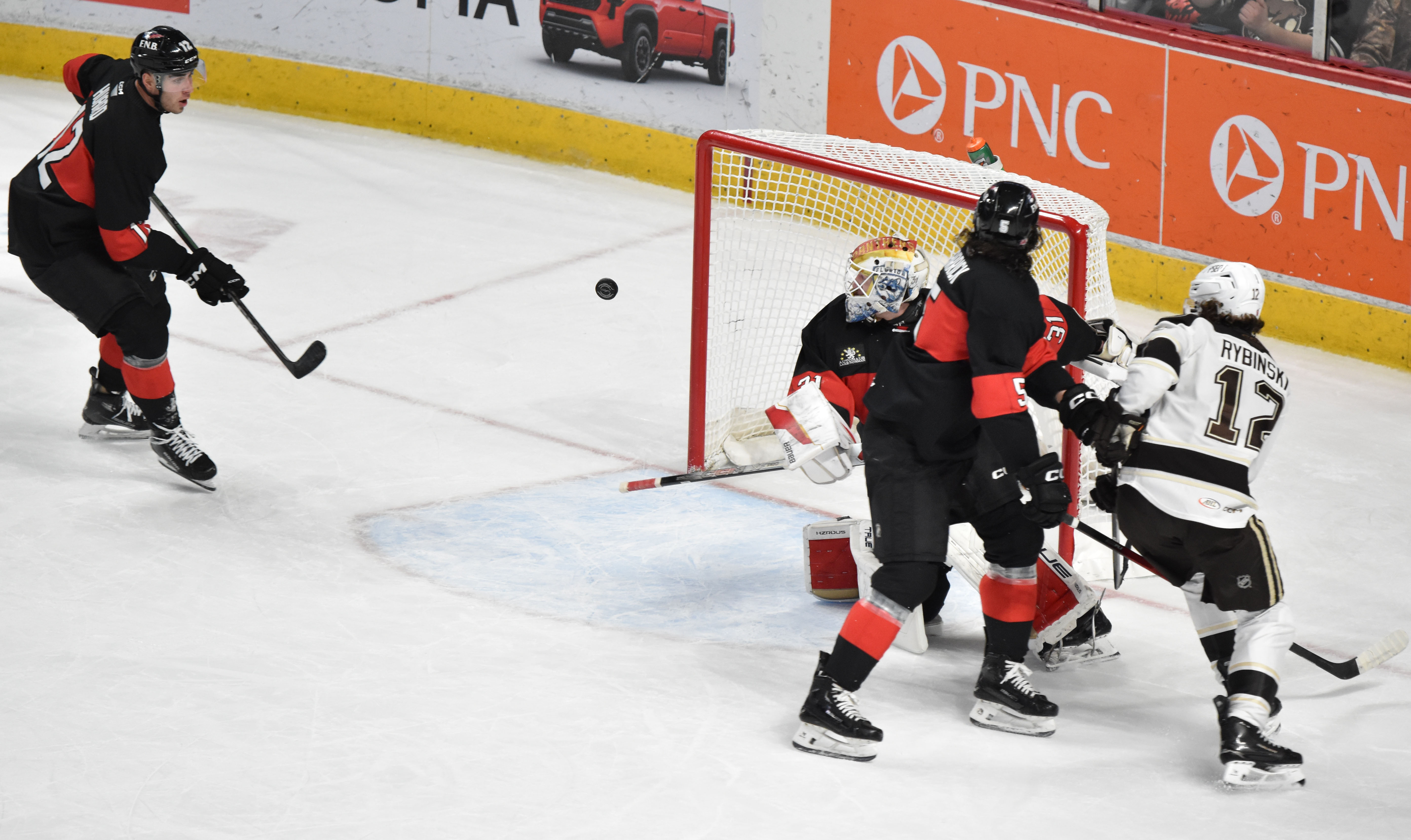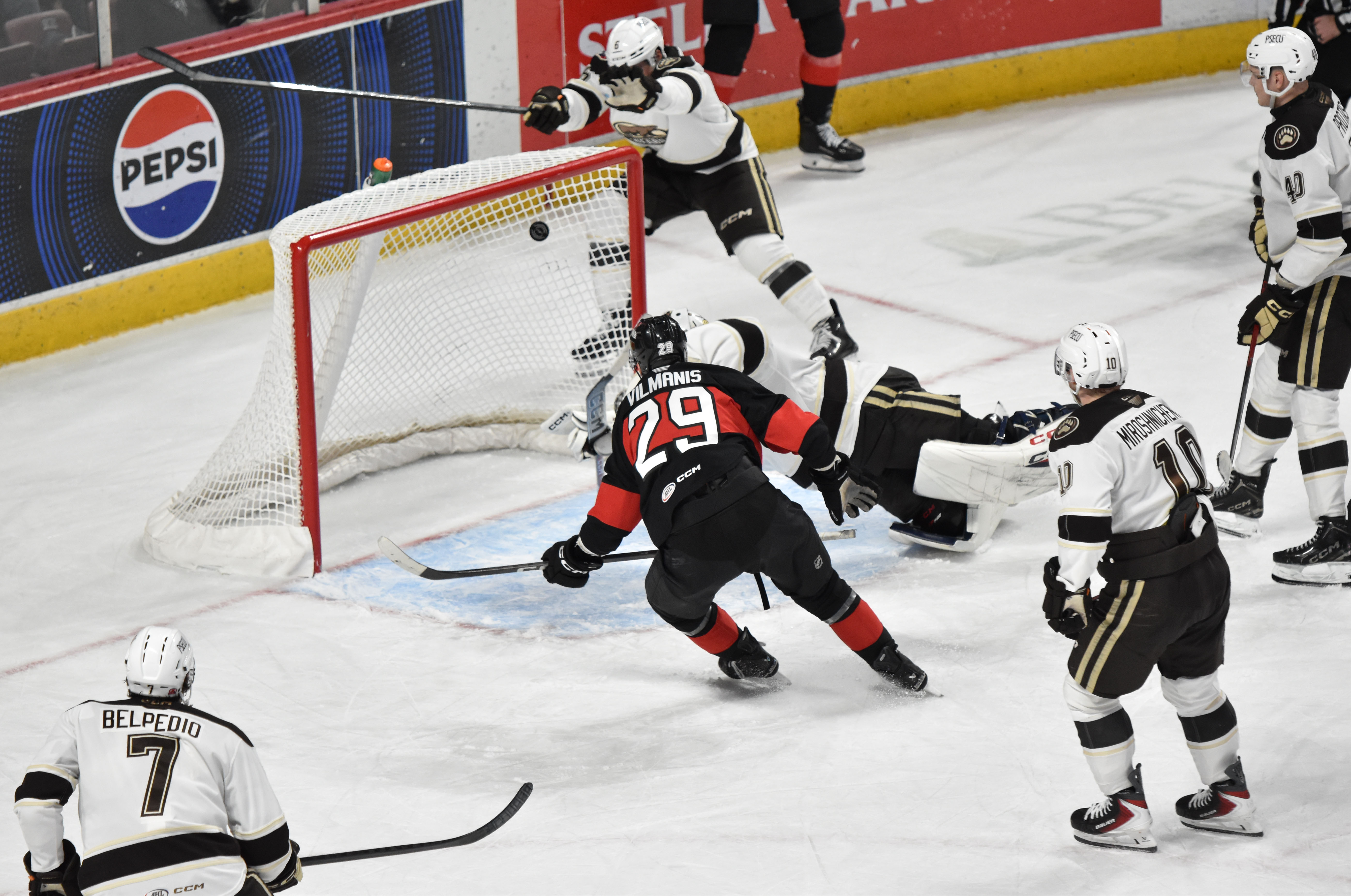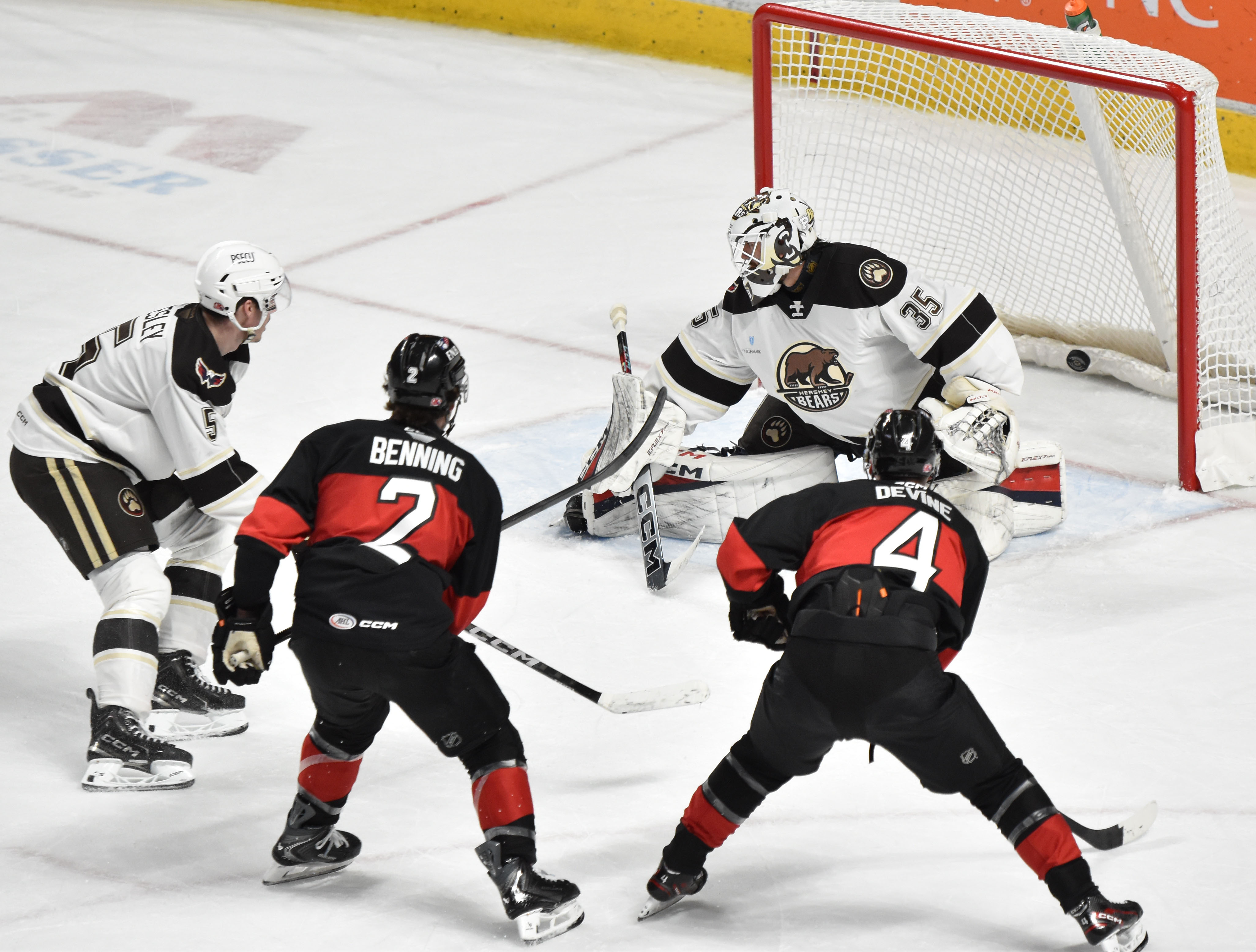 Sandis Vilmanis buried the game-winning goal with 1:18 left in regulation. Brett Chorske stole the puck behind the Hershey net, centered it for Smith, who moved it across the slot for Vilmanis. The Riga, Latvia, native made no mistake, firing his seventh goal of the season past a sprawling Gibson. Cooper Black recorded his 13th win of the season with 24 saves, improving to 10-1 in his last 11 outings. Gibson stopped 19 shots in the loss.