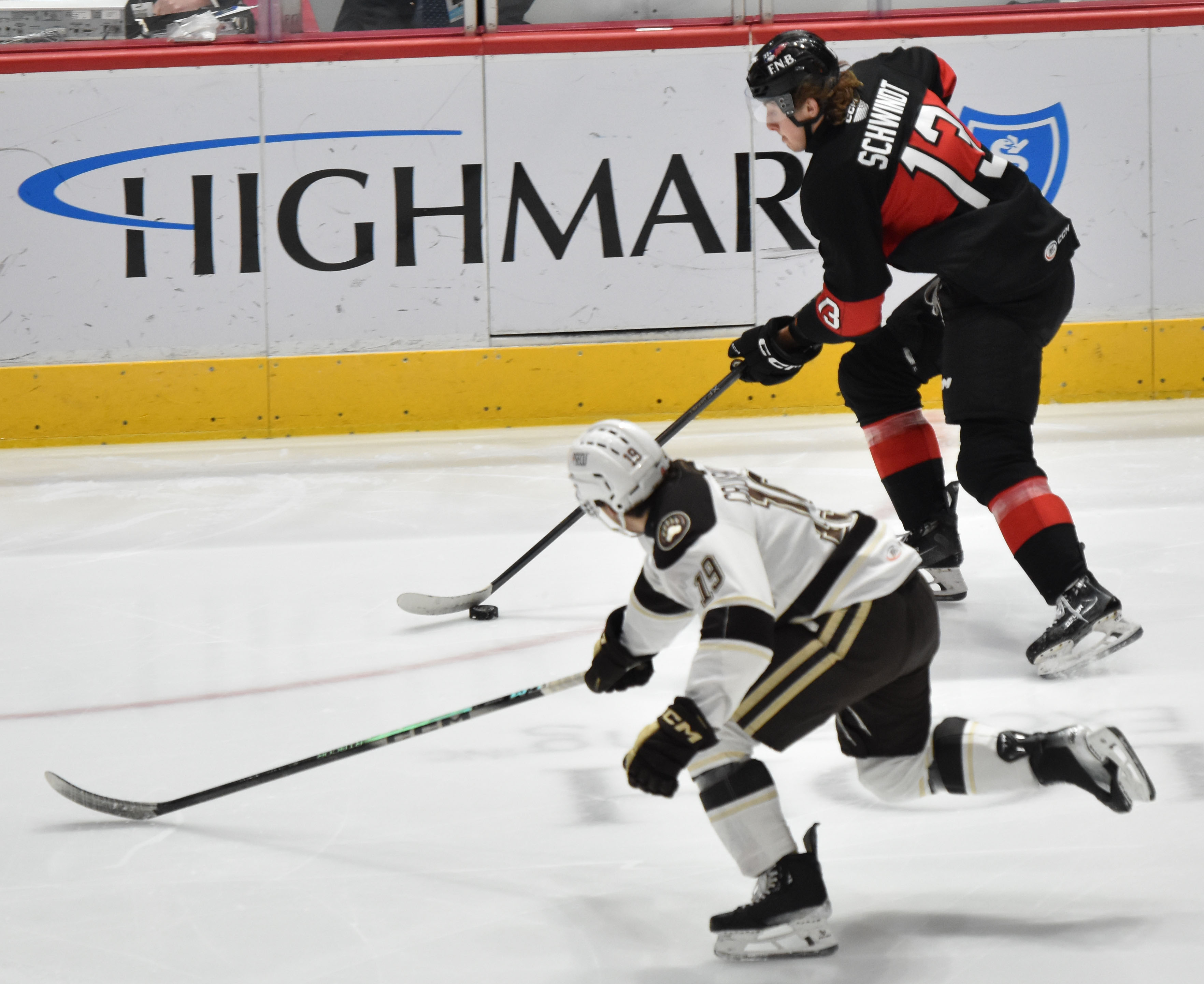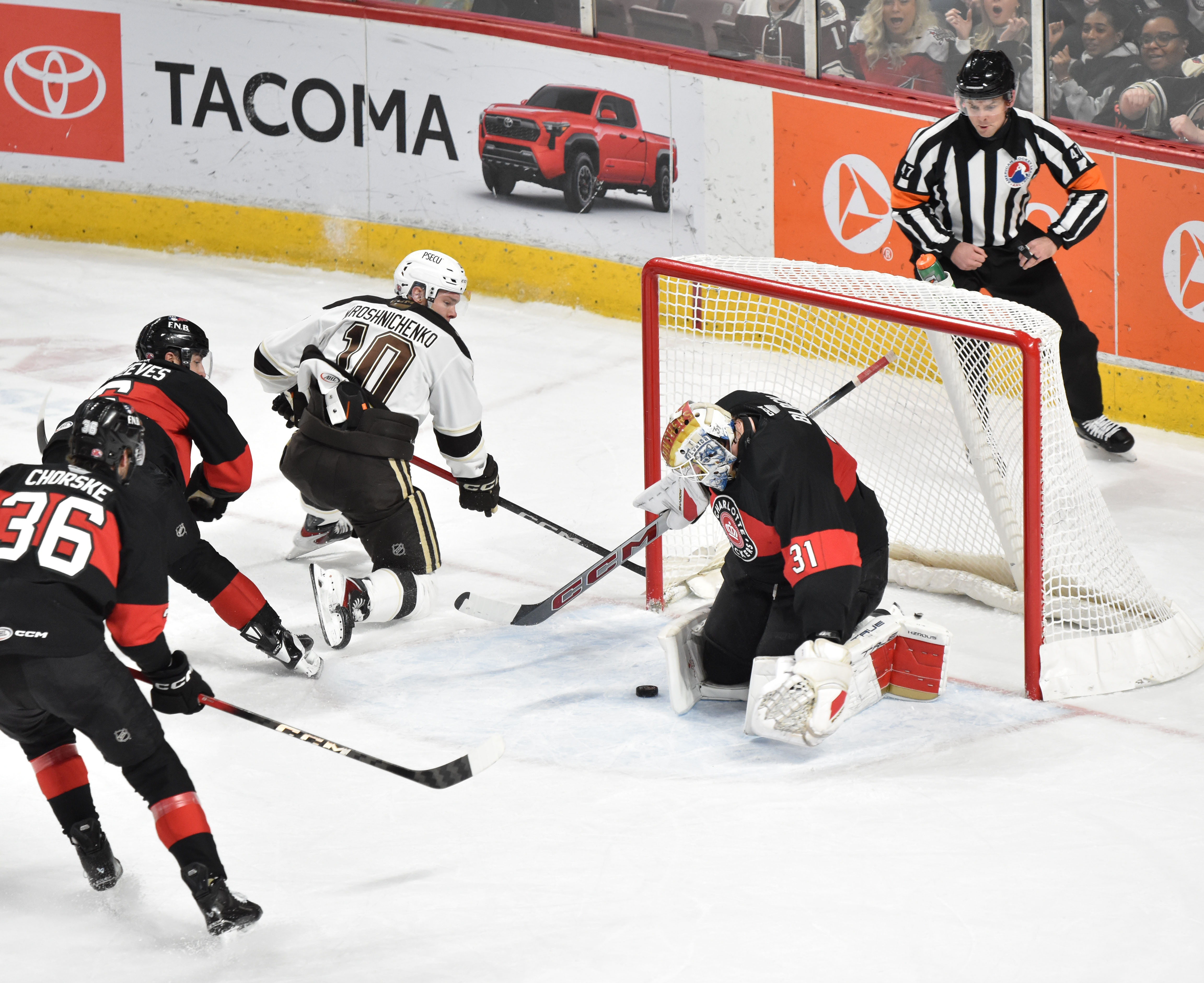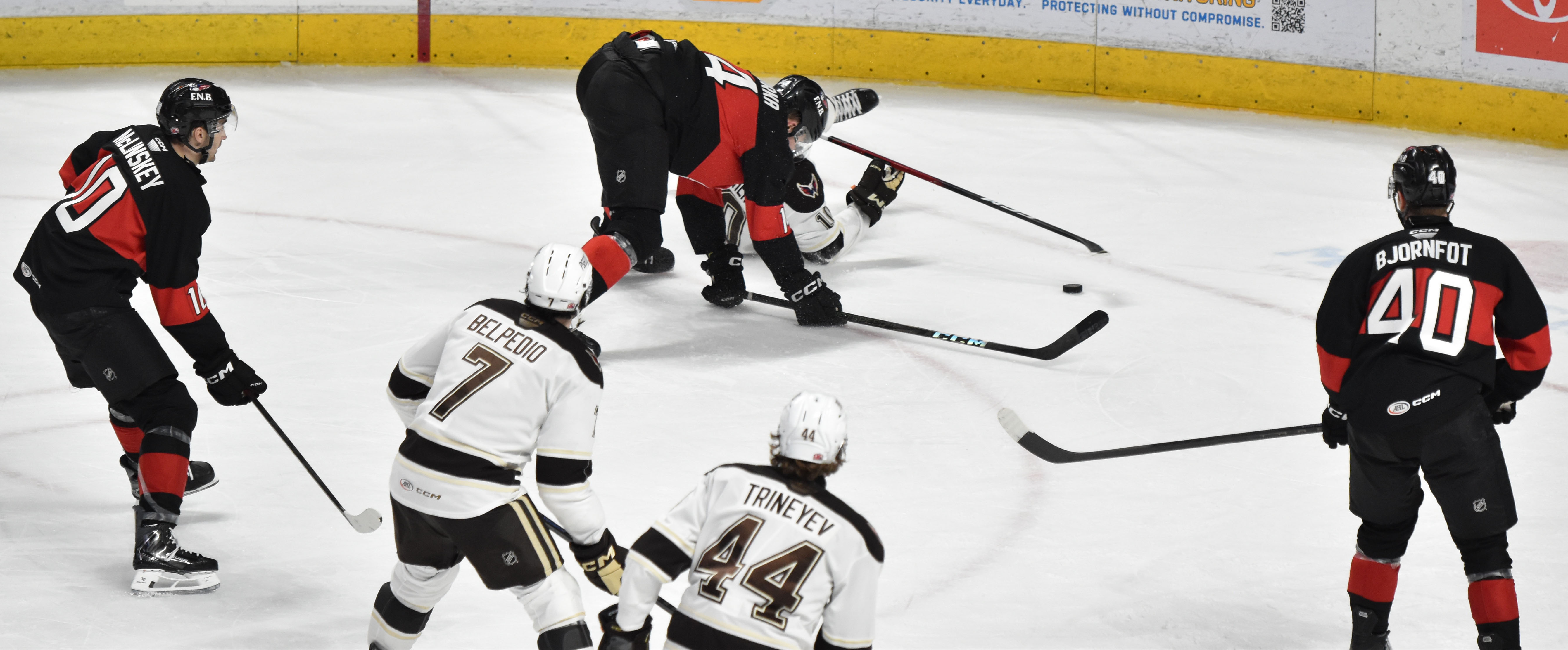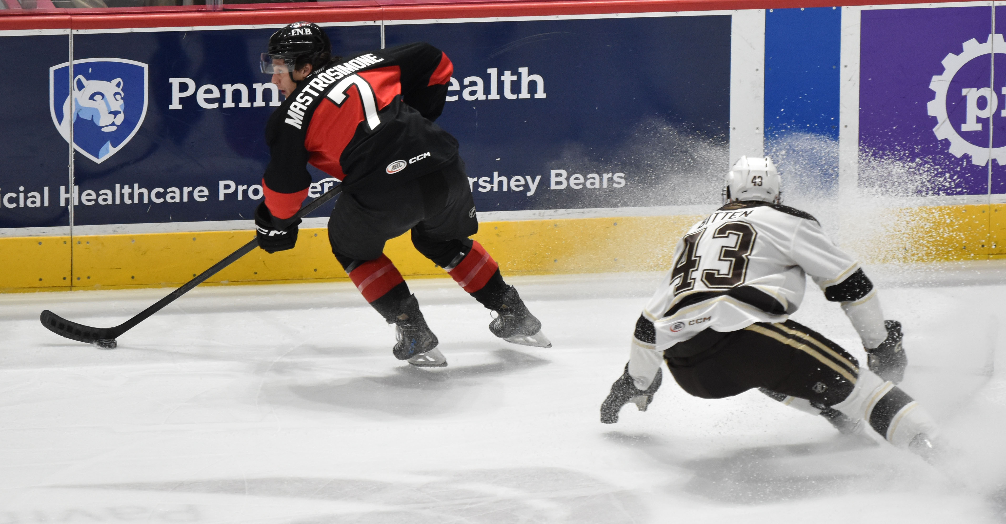 Sandis Vilmanis buried the game-winning goal with 1:18 left in regulation. Brett Chorske stole the puck behind the Hershey net, centered it for Smith, who moved it across the slot for Vilmanis. The Riga, Latvia, native made no mistake, firing his seventh goal of the season past a sprawling Gibson. Cooper Black recorded his 13th win of the season with 24 saves, improving to 10-1 in his last 11 outings. Gibson stopped 19 shots in the loss.