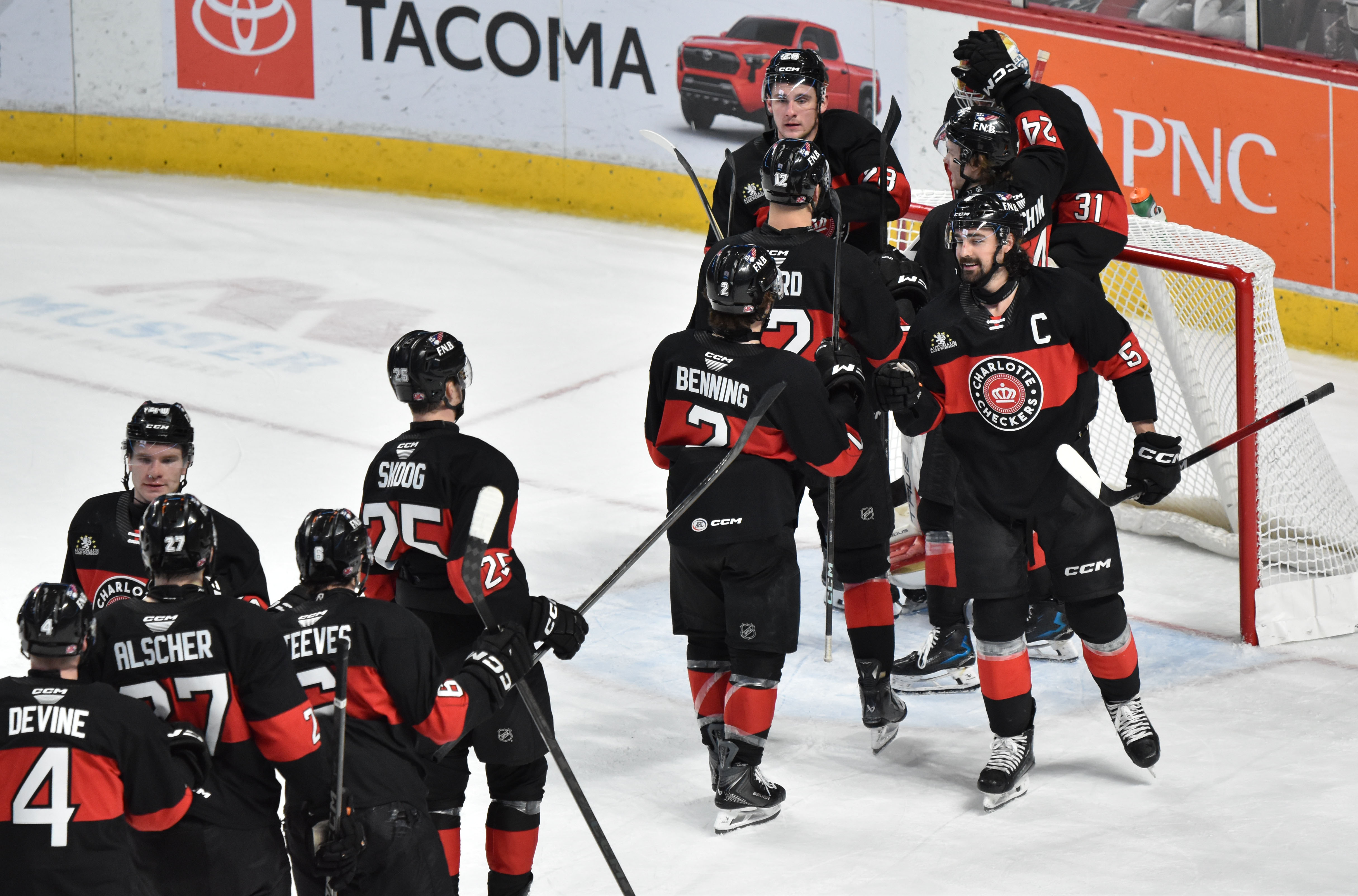 Charlotte has won four of their last five games (4-1) … Foote has four points in his previous five appearances … Black currently ranks second in the AHL in wins … Smith played 60 games last season with the Abbotsford Canucks, winning a Calder Cup championship in 2024-25 … The Checkers went 0-for-4 on the power play and 3-for-5 on the penalty kill … Ludvig Jansson, Mitch Vande Sompel, Ryan McAllister, Eamon Powell, MacKenzie Entwistle, Hunter St. Martin, Riese Gaber, Tyler Motte and Louis Domingue were scratched for Charlotte.