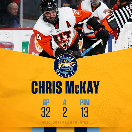 TOLEDO, OH – Defenseman Chris McKay has agreed to terms with the Toledo Walleye for the 2021-2022 season.