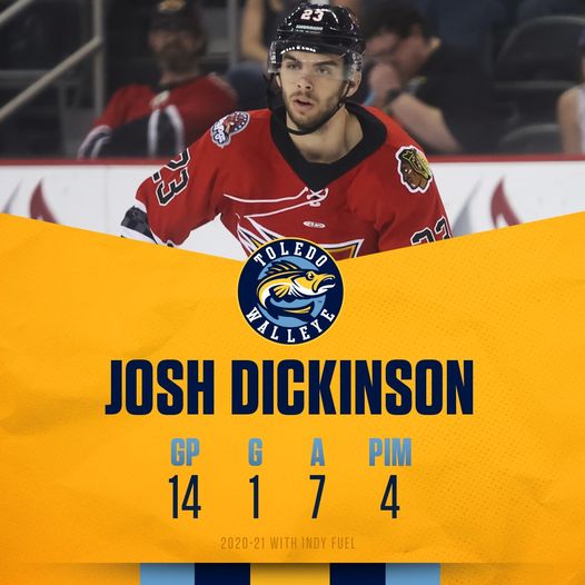 TOLEDO, OH – Forward Josh Dickinson has agreed to terms with the Toledo Walleye for the 2021-2022 season.