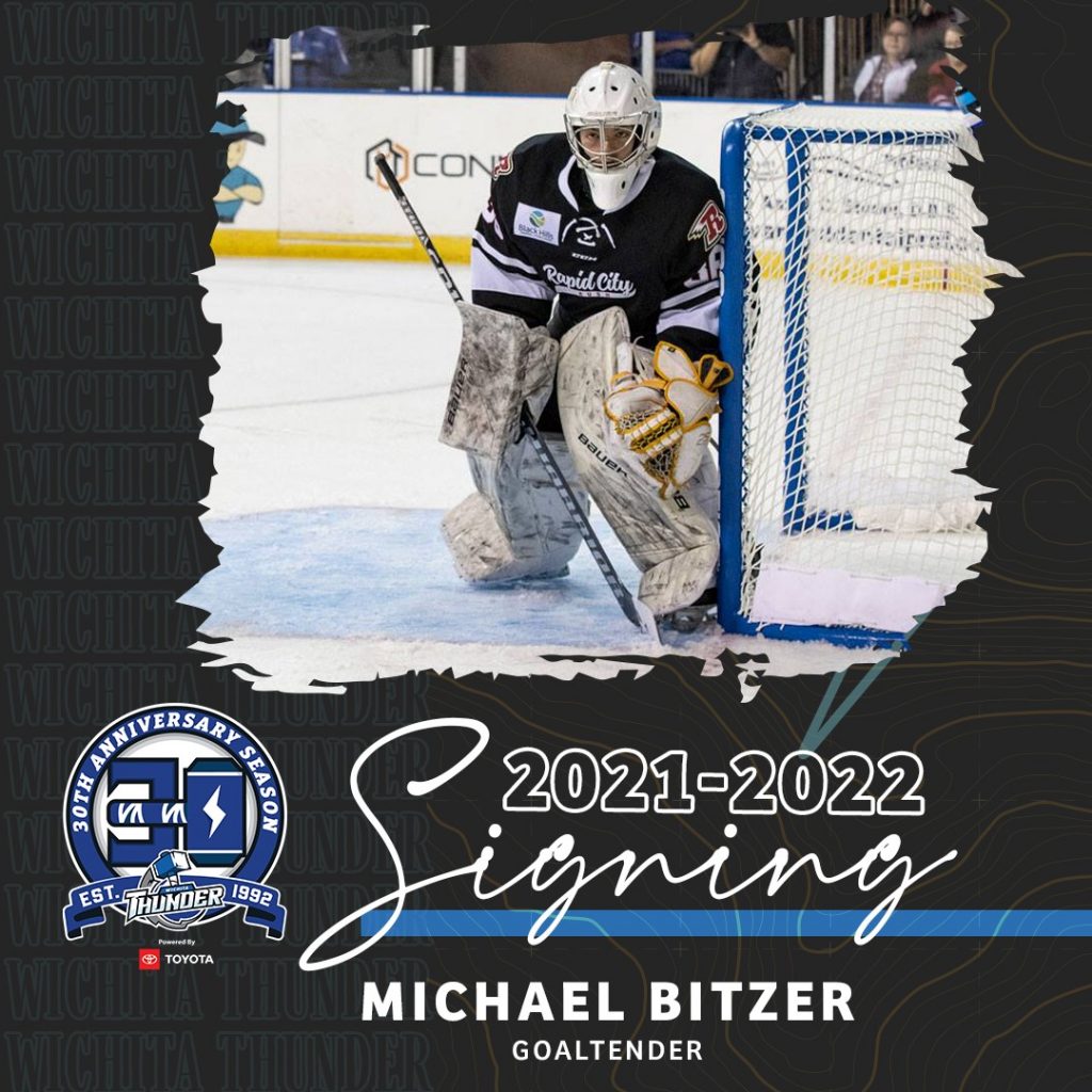 WICHITA, KS – The Wichita Thunder, ECHL affiliate of the National Hockey League’s Edmonton Oilers and American Hockey League’s Bakersfield Condors and powered by Toyota, announced the signing of goaltender Michael Bitzer and forward Carter Johnson for the 2021-22 season.