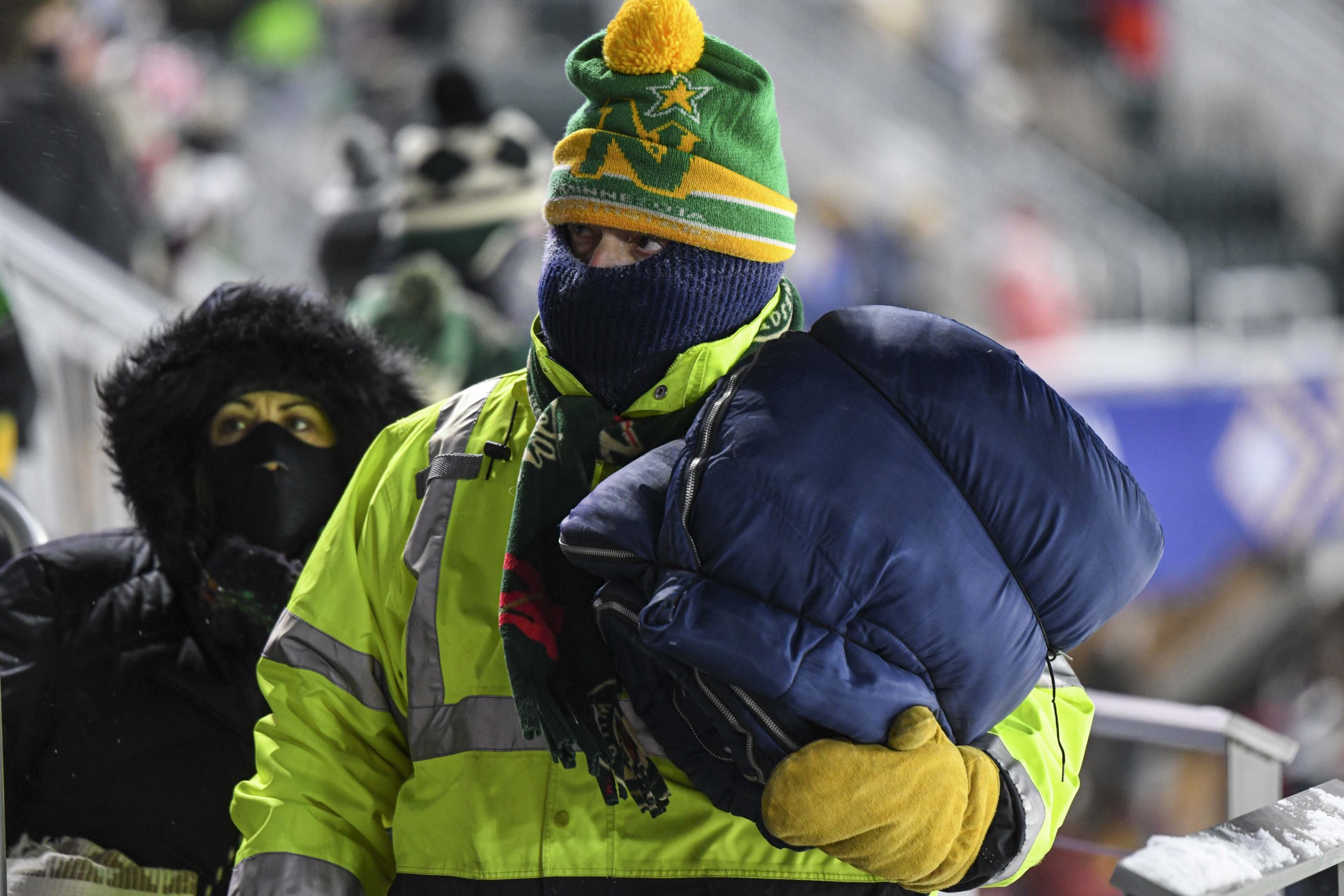 Minneapolis – As temperatures dipped to -8 degrees with a -24 mile an hour wind chill at the puck drop, Minnesota and St Louis fans showed up for the Winter Classic 2022, dressed for the occasion.