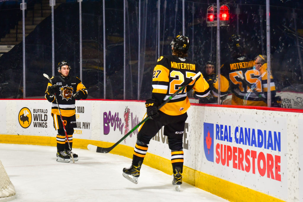 The second period was all Hamilton Bulldogs as they poured on the offence, at 6:22 Logan Morrison set the puck for Nathan Staios and his point shot carried wide off the end boards to Avery Hayes who banked the puck off an Erie defender for his 28th of the season. Just over 6 minutes later with the Bulldogs on a 5-on-3, Logan Morrison stole the puck behind the Erie goal and looked for Ryan Winterton on a wrap-around pass, Winterton’s shot was stopped by Lalonde but Jan Mysak was on the spot for the follow up, recording his 27th of the year at 12:42. Before the frame was out, Lawson Sherk exited the penalty box, taking a pass from Jan Mysak and setting Ryan Winterton in a 2-on-1 for his 2nd of the game and 9th of the season at 17:48 giving the Bulldogs a 4-1 lead heading into the third period.
