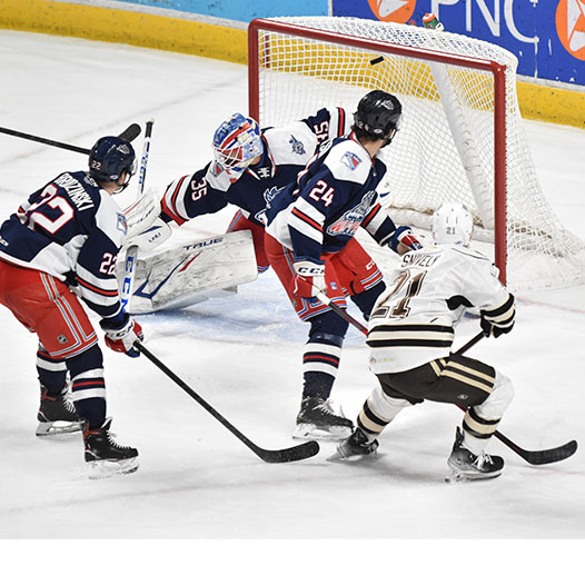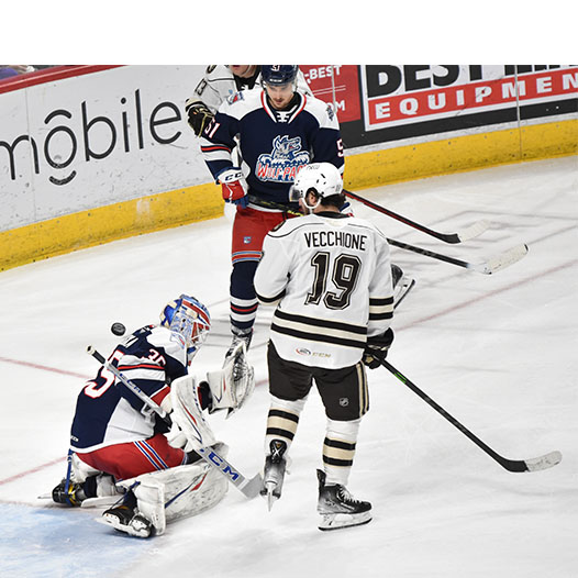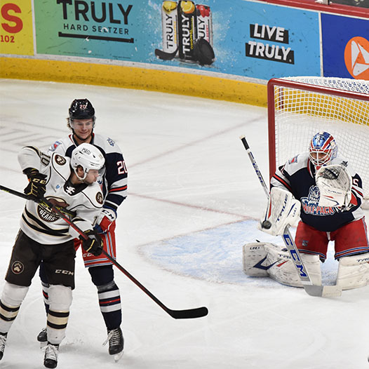The Wolf Pack opened the scoring in this game just 7:08 into contest. Austin Rueschhoff cut into the Bears’ zone, taking possession all the way behind the Hershey goal. His attempted drop pass hit the end boards, popping off the stick of Fucale and to the side of the net. Ronning was there and cut in front of the net for a high-danger chance on Fucale. The veteran netminder made the initial save, but the rebound popped right to Tanner Fritz. Fritz buried his fifth goal of the season, and first in 15 games, to put the Pack ahead 1-0.