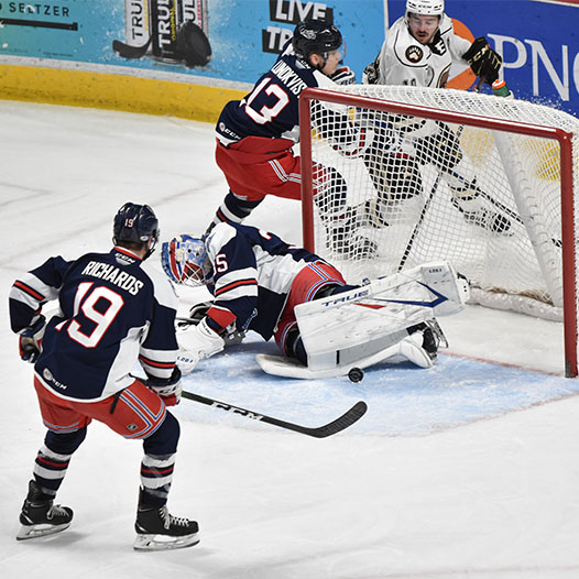 Ty Ronning collected a loose puck along the wall in the Hershey zone, quickly playing it back to the point for defenseman Tarmo Reunanen. Reunanen fired a low shot into traffic, with Richards providing a screen in front of Hershey starter Zach Fucale. Richards got a piece of the shot, deflecting home the eventual winning goal at 17:14 of the third period. The goal, Richards’ third of the season, was his second game winner.