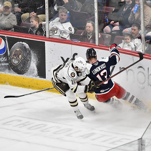 The Bears would respond late in the period, evening the contest at 1-1 on the powerplay. Axel Jonsson-Fjallby, who scored a hat-trick last night, fired a quick pass in front of the Hartford goal that was corralled by Joe Snively. Snively quickly fired a shot that beat Adam Húska at 19:02.