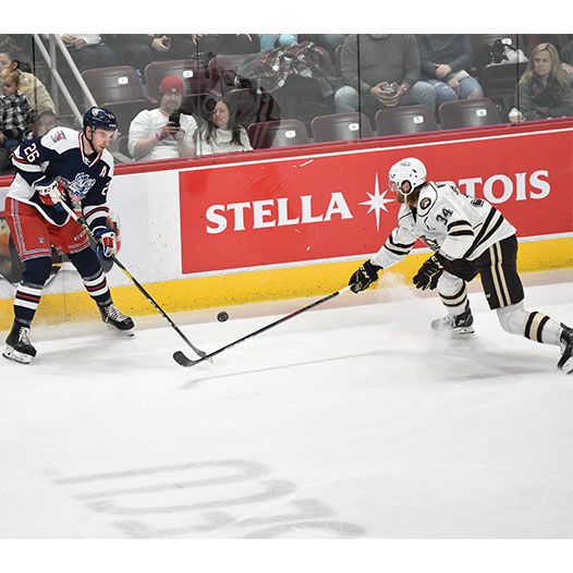 In the middle frame, Hartford again struck first to jump ahead 2-1. Jonny Brodzinski, assigned to the Wolf Pack from the Rangers taxi squad on Sunday morning, extended his point streak to five games with his team-leading 12th goal. Zac Jones carried the puck behind the Hershey goal, then placed a perfect pass onto the stick of Brodzinski at the front of the goal. The captain fired the puck over the blocker of Fucale at 5:36 of the second period.