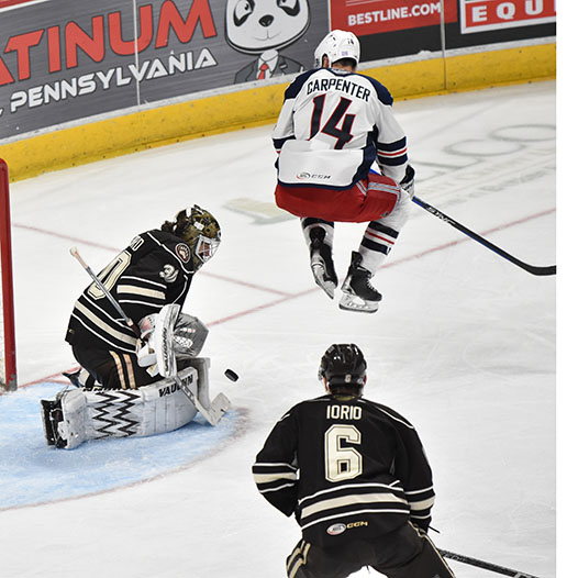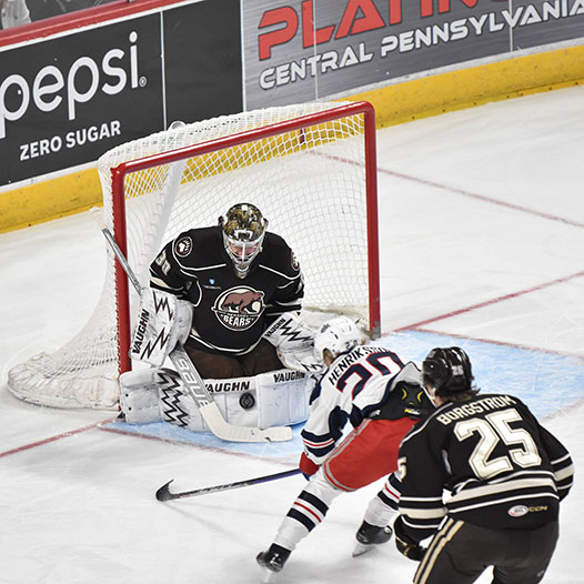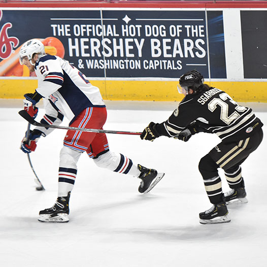 HERSHEY, PA – The Hartford Wolf Pack peppered Hershey Bears netminder Hunter Shepard on Saturday night, firing 34 shots on the goaltender, and clipping the goal post three times. Will Cuylle did manage to beat Shepard in the middle stanza, but the goaltender’s terrific effort would be enough to cement a 2-1 decision for the Bears in the sixth and final meeting between the foes this season.