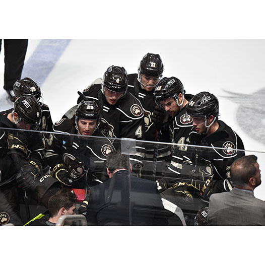 The Wolf Pack started the second half of their weekend back-to-back quite strong, firing the first seven shots on goal and hitting a goal post. The Bears settled things down, however, and broke the ice off a scramble out in front.