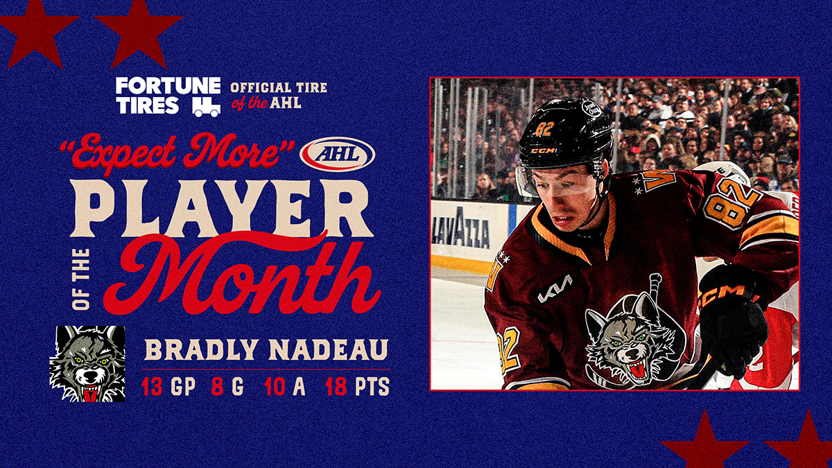 SPRINGFIELD, Mass. … The American Hockey League announced today that Chicago Wolves forward Bradly Nadeau has been selected as the Fortune Tires “Expect More” AHL Player of the Month for January.