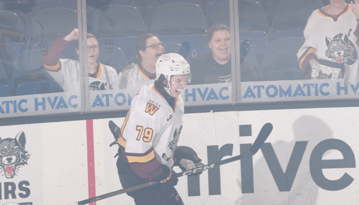 The Wolves opened the scoring early in the first period on Neuchev’s ninth goal of the season. The forward staked his claim in front of the Moose crease and redirected a long shot by Charles Alexis Legault past Manitoba netminder Thomas Milic. Legault and Unger Sorum had assists.