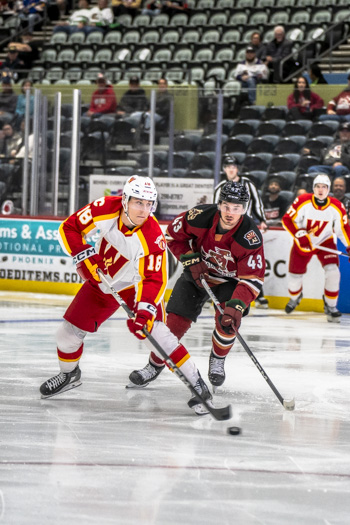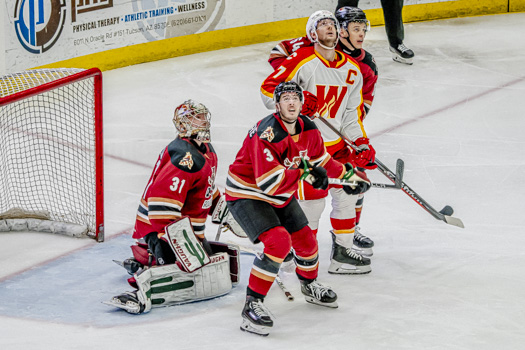 Moments later, on a powerplay of their own at 5:26, Austin Poganski scored his 12th goal of the campaign to restore the Roadrunners’ two-goal edge.