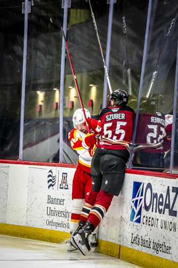 Tucson took the lead at 9:44 when Aku Raty sent a perfect pass down low to Milos Kelemen, who went backhand – forehand and roofed the puck over Dansk.