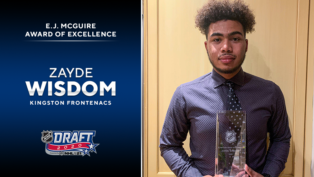 TORONTO – Zayde Wisdom, the 54th-ranked North American skater for the 2020 NHL Draft™ presented by EA SPORTS NHL 21, has been presented the E.J. McGuire Award of Excellence, the National Hockey League announced today.