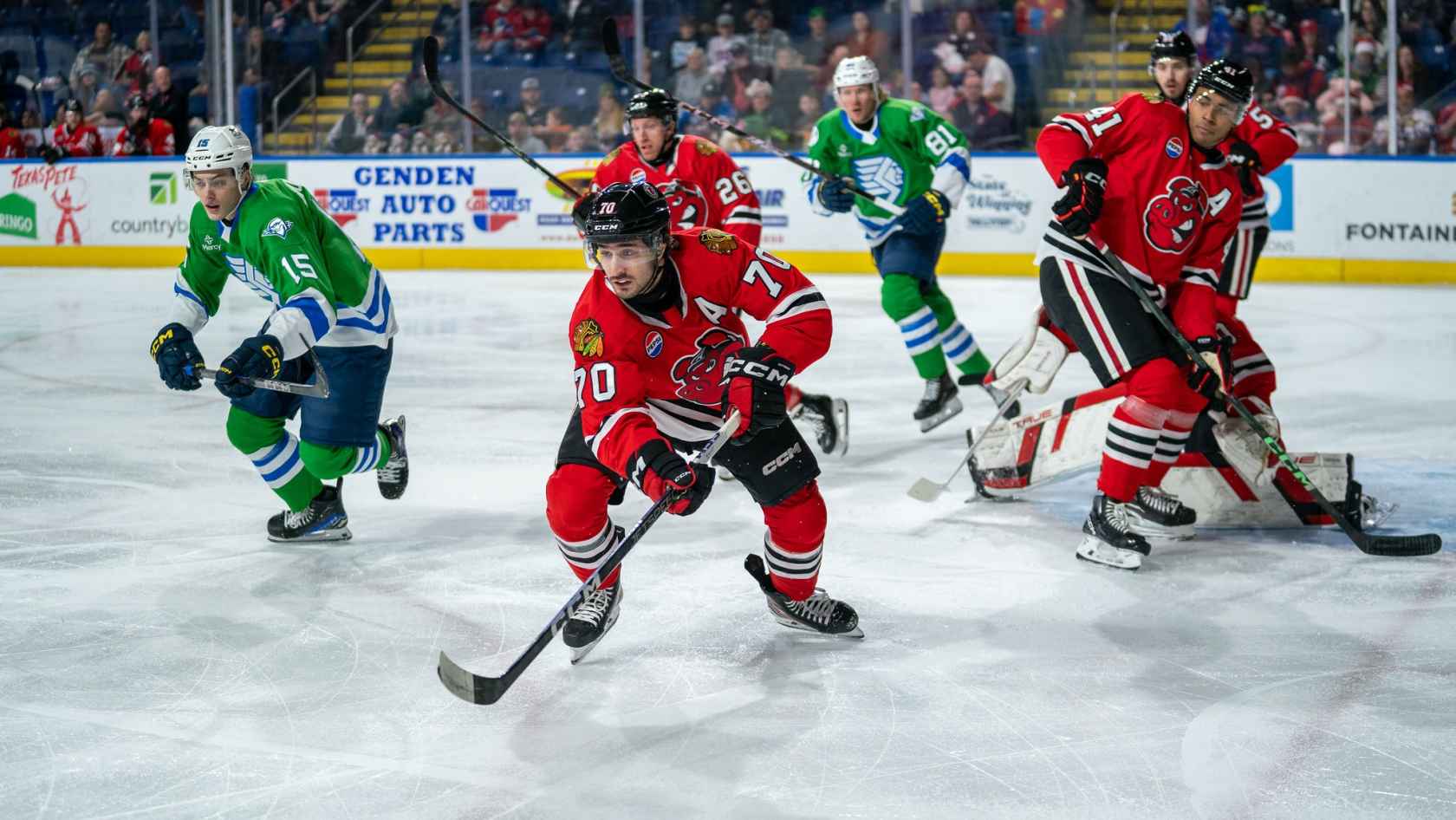 SPRINGFIELD, Mass. — The Springfield Thunderbirds (12-9-1-0) clawed back from 1-0 down after 40 minutes and emerged with a 2-1 overtime victory over the Rockford IceHogs (8-10-3-0) before a sold-out crowd of 6,793 on Saturday night at the MassMutual Center.